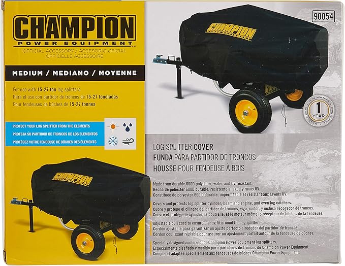 Average assembly time is under 35 minutes Accommodates splitting in both horizontal and vertical position Square log cradle for. 1 Year Limited Warranty Champions storage cover for 15 to 27-ton log splitters will keep your valuable equipment safe clean and dry year round. Wheels for easy transport Compact size for.