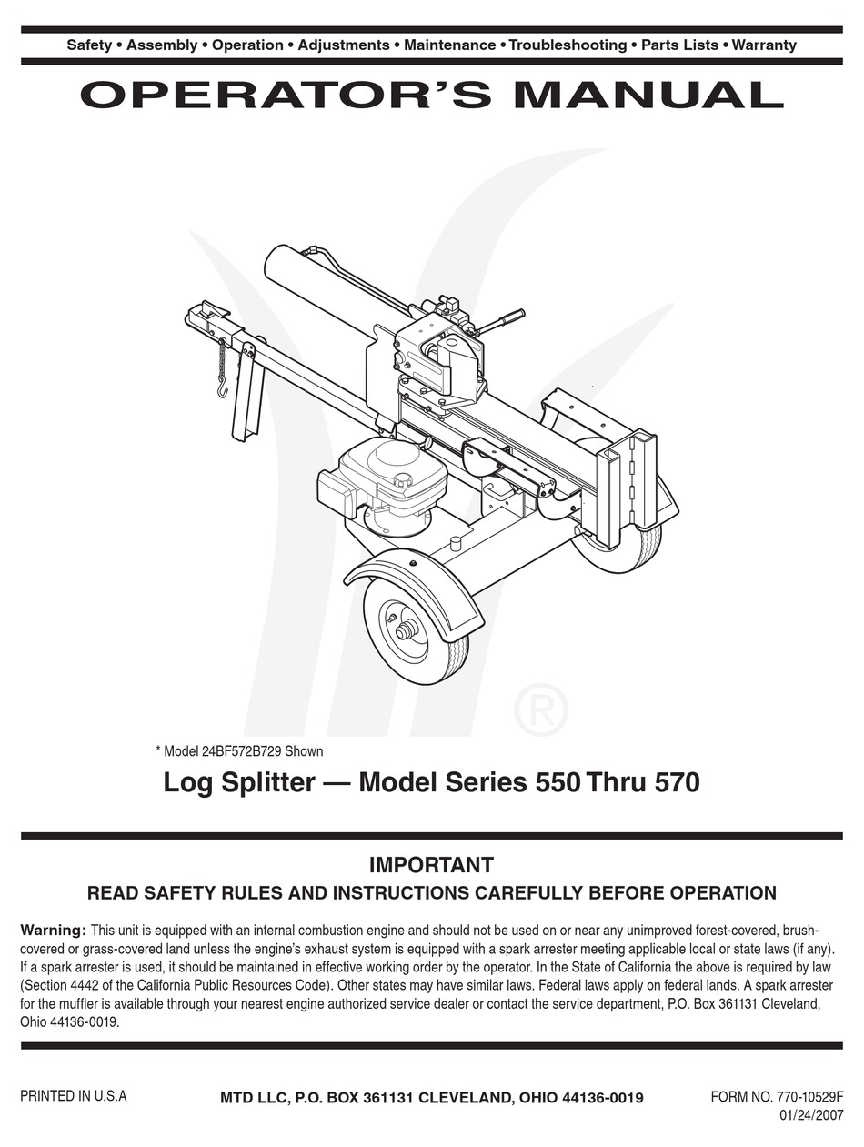 Mtd 24bf570l099 User Manual Log Splitter Manuals And Guides L1005268